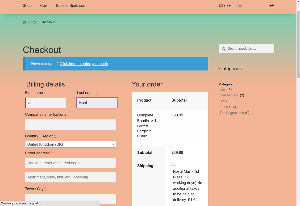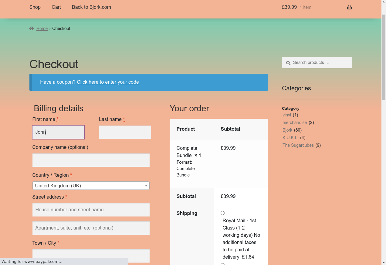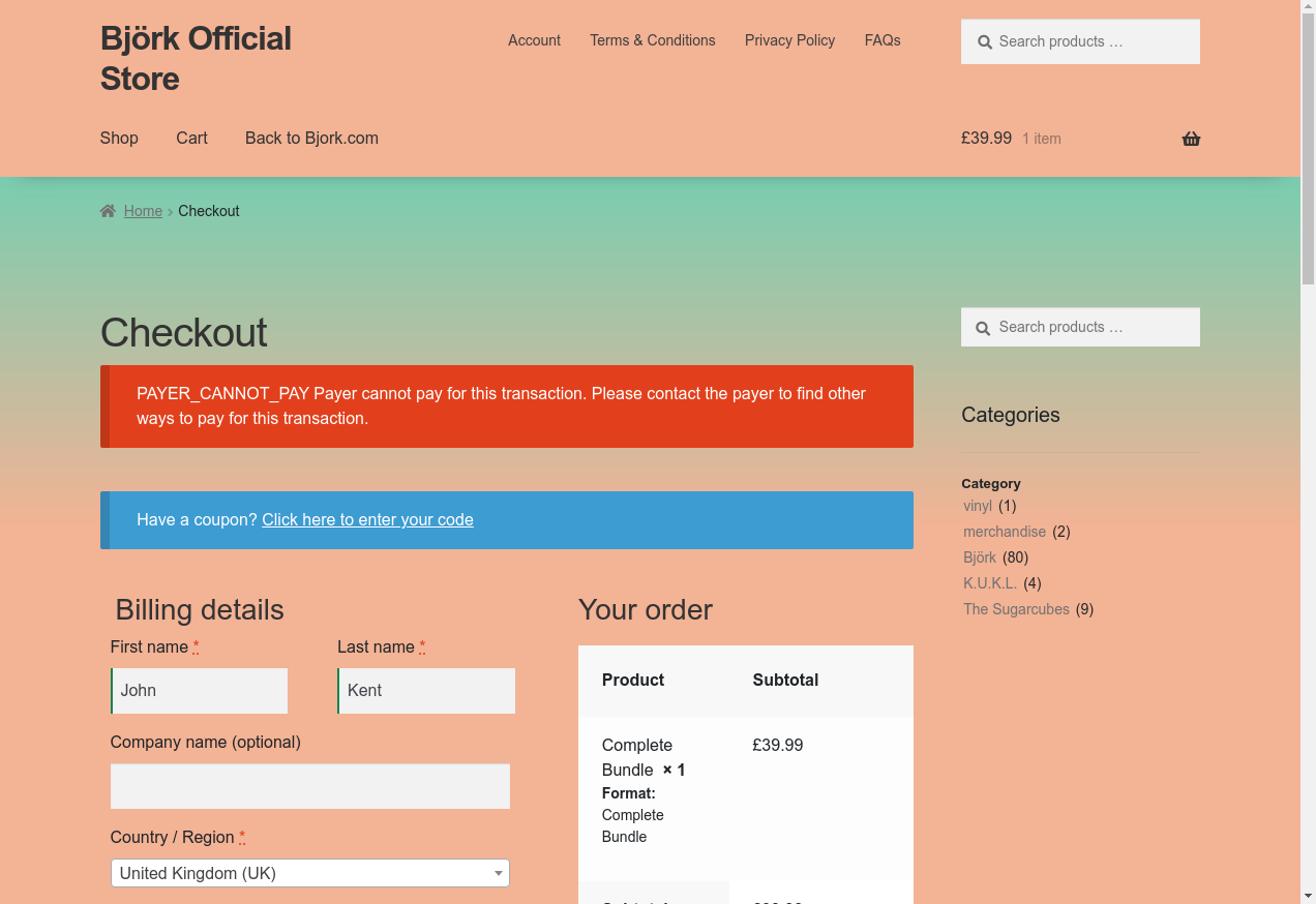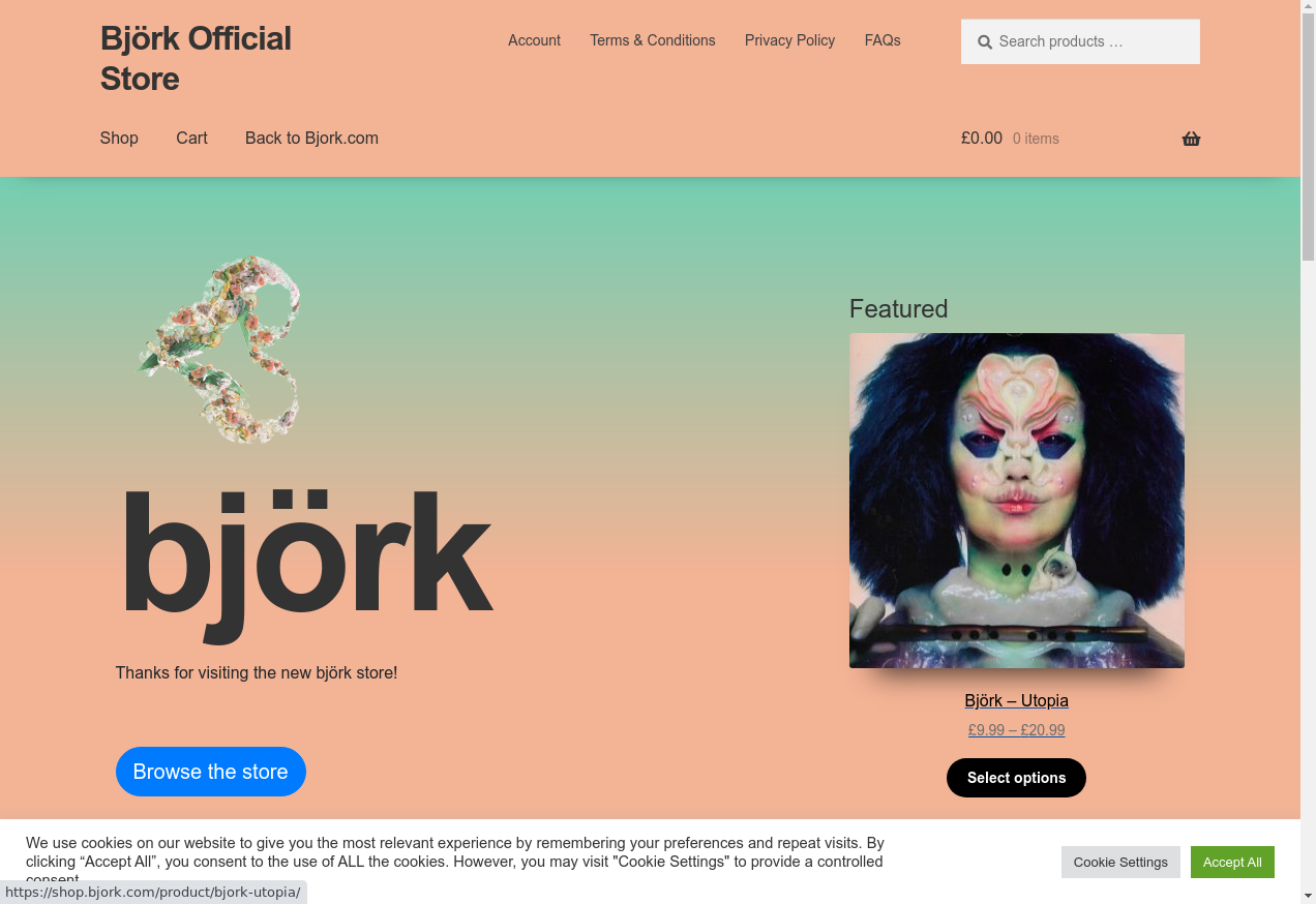 2. I go to "https://shop.bjork.com/"