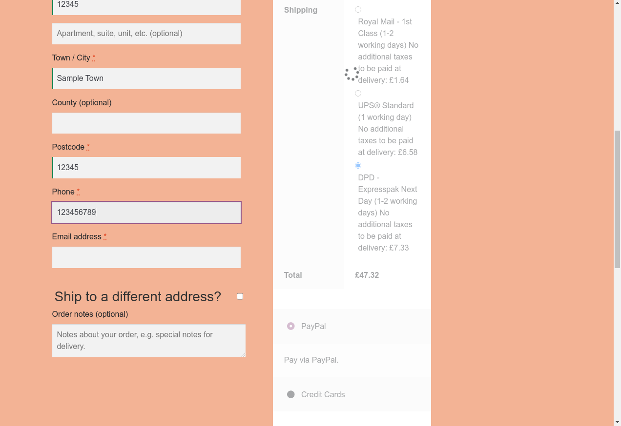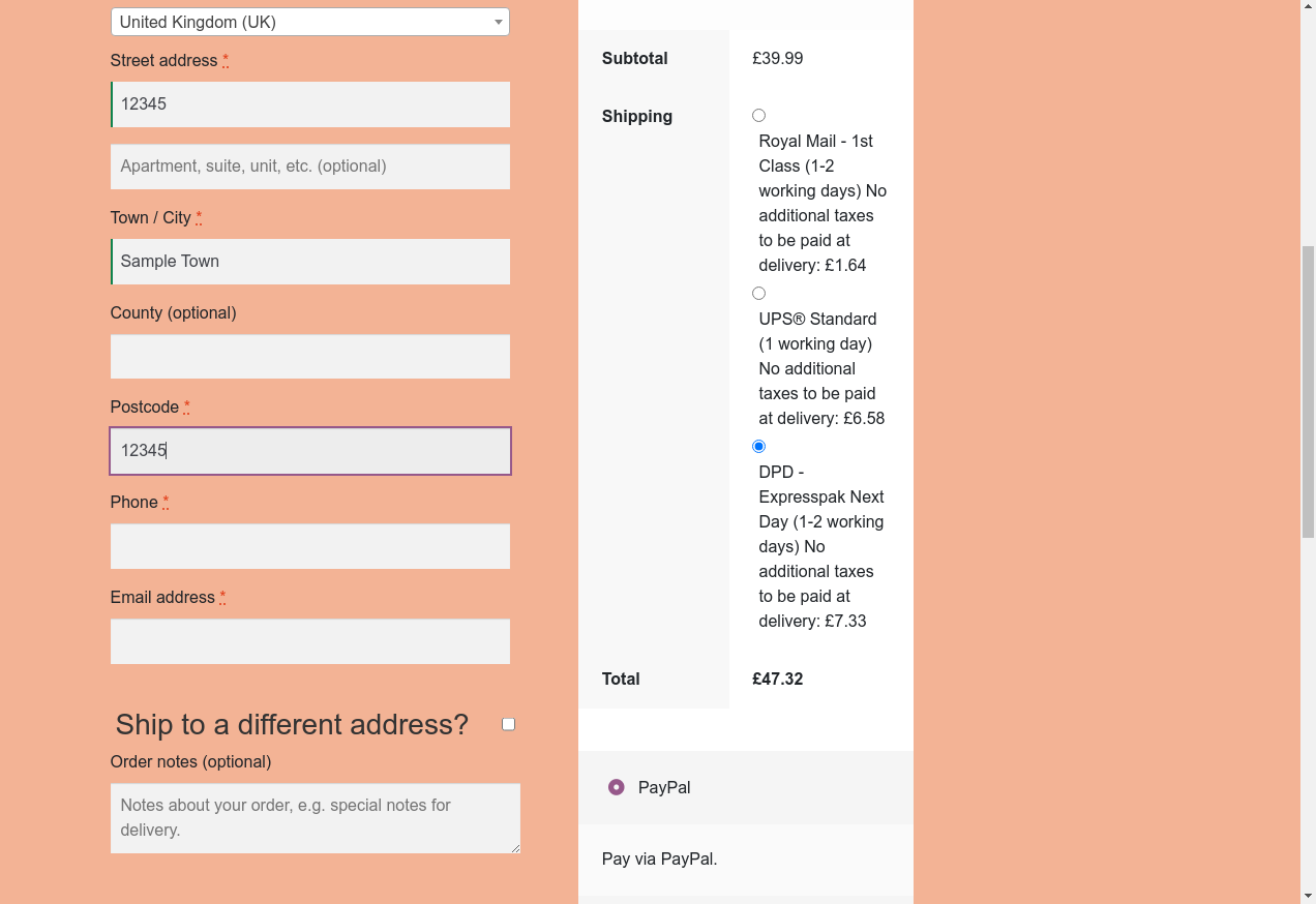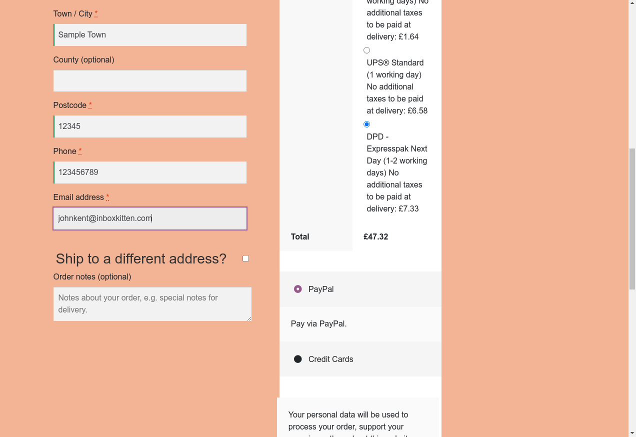 16. I fill "Town / City": "Sample Town"