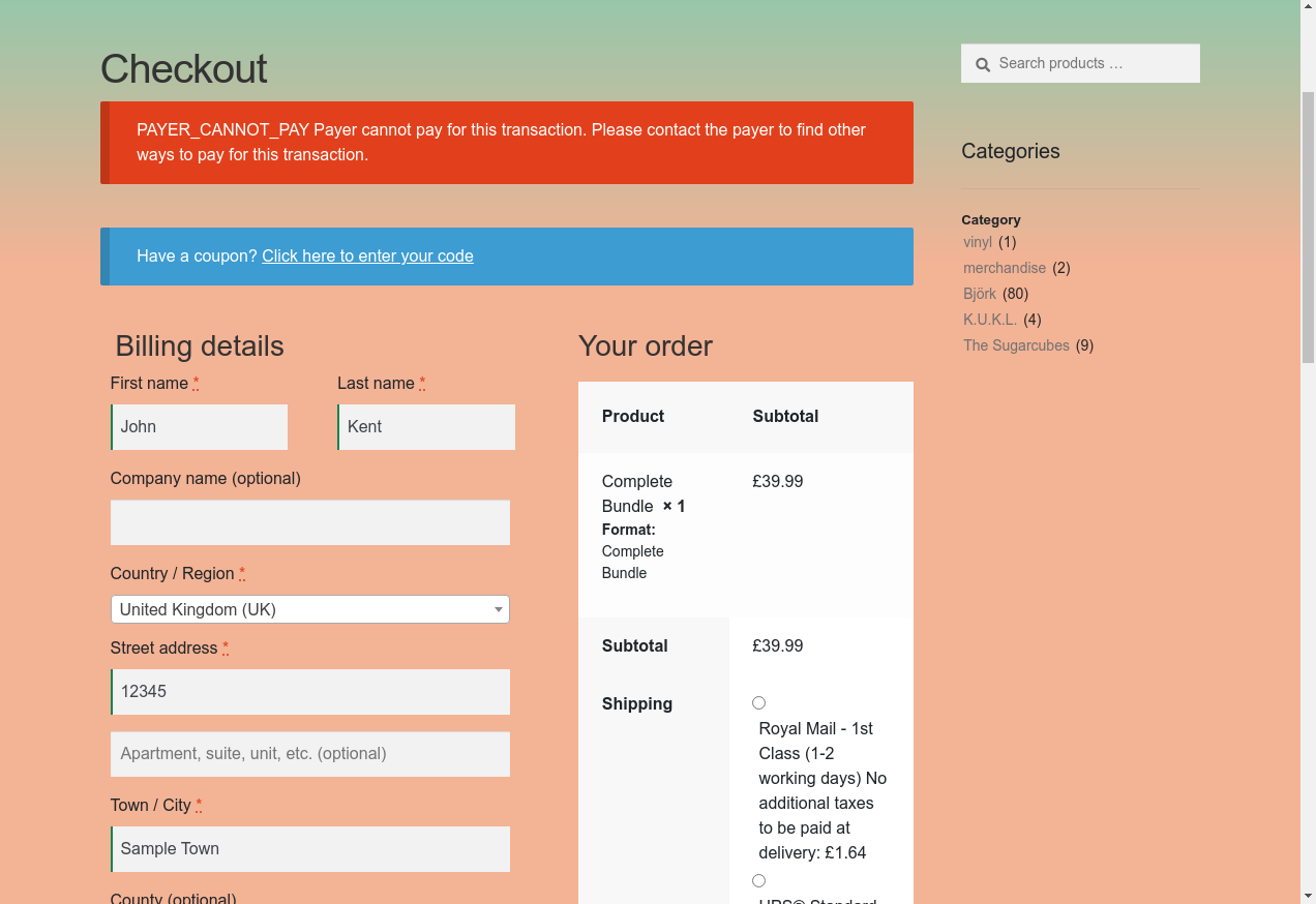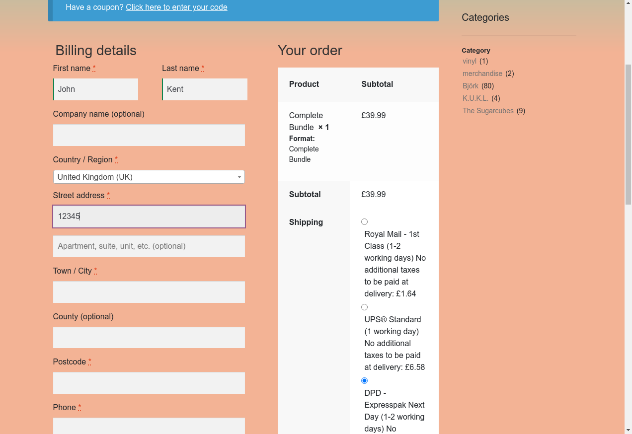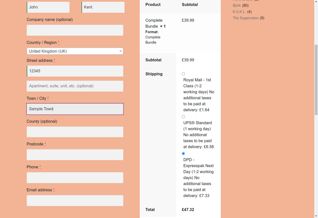 16. I fill "Town / City": "Sample Town"