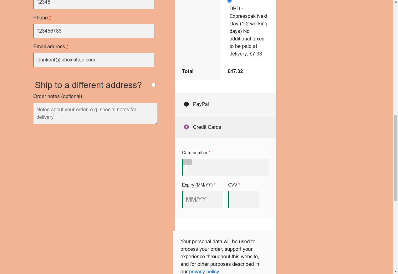 23. I fill "CVV": "123"