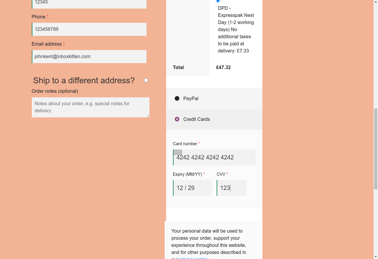 22. I fill "Expiry": "12/29"