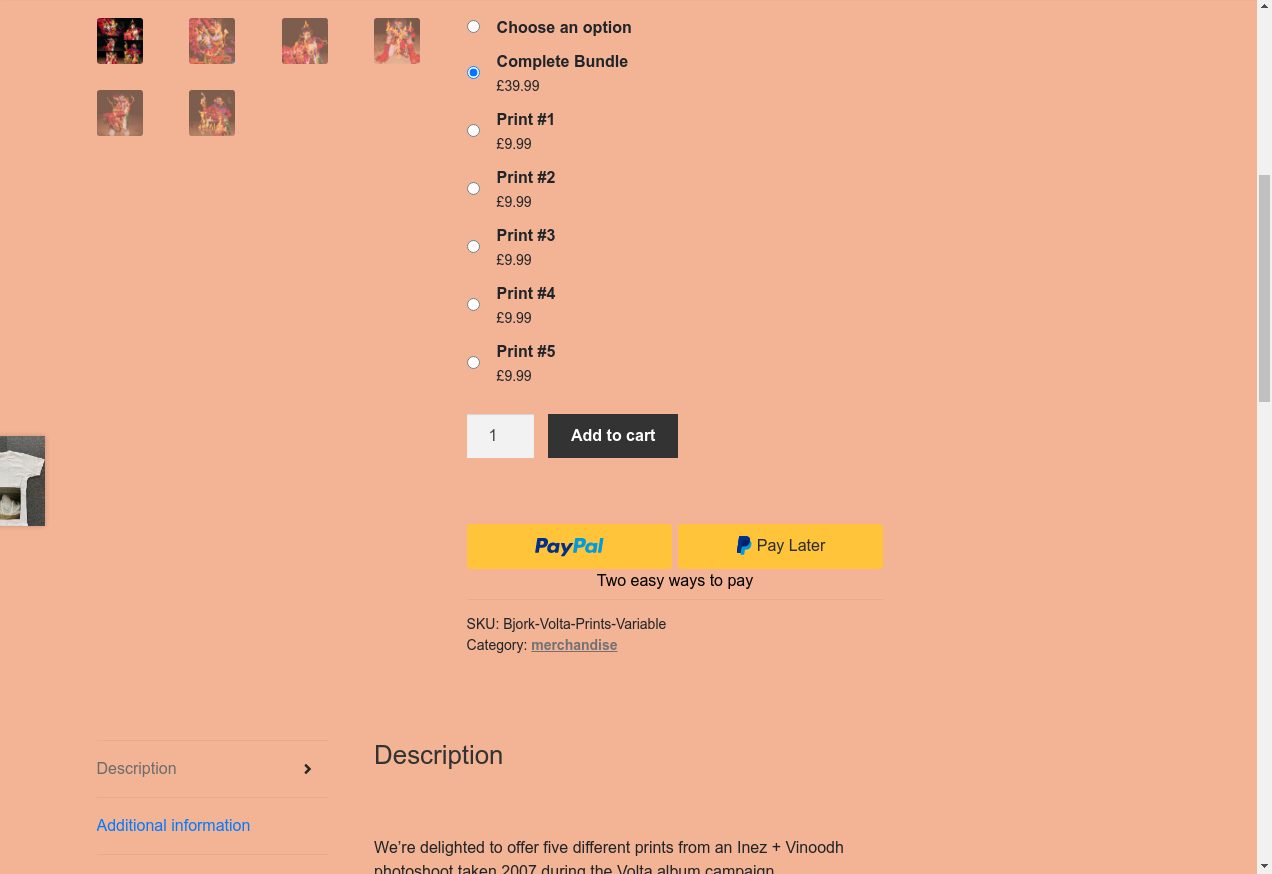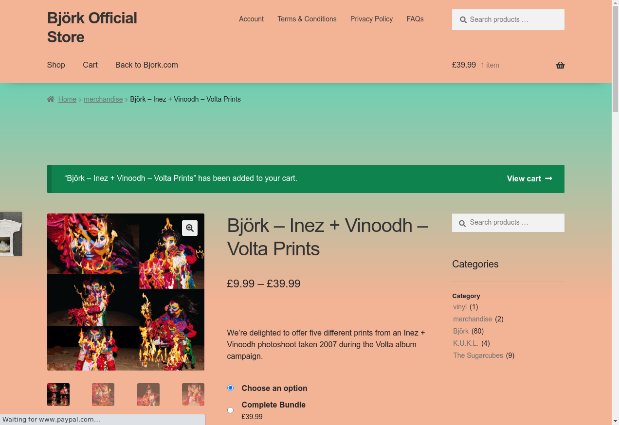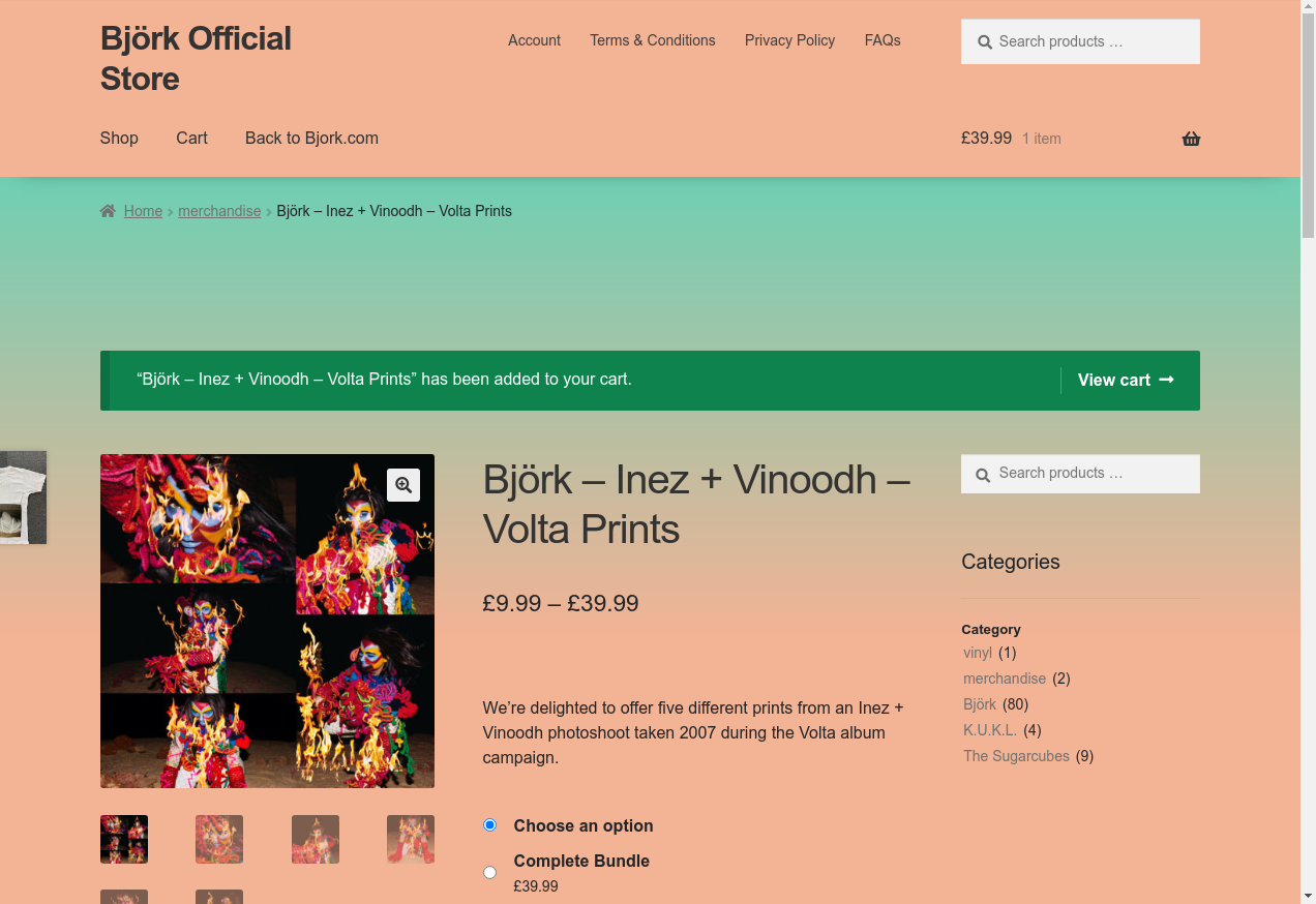 9. I see "“Björk – Inez + Vinoodh – Volta Prints” has been added to your cart."