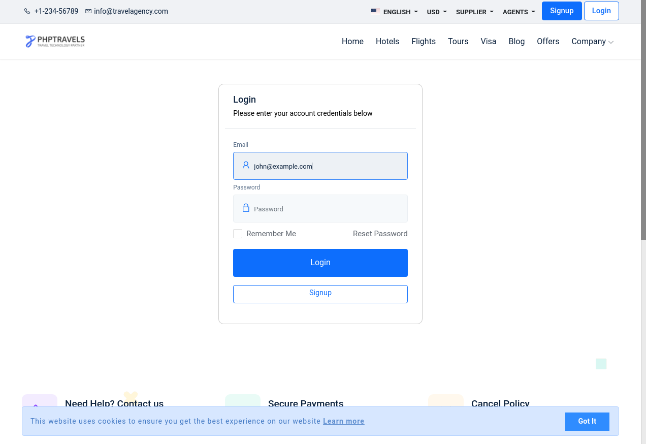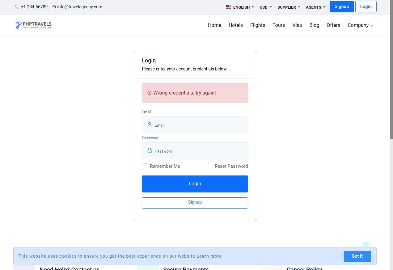 Login to PhpTravels