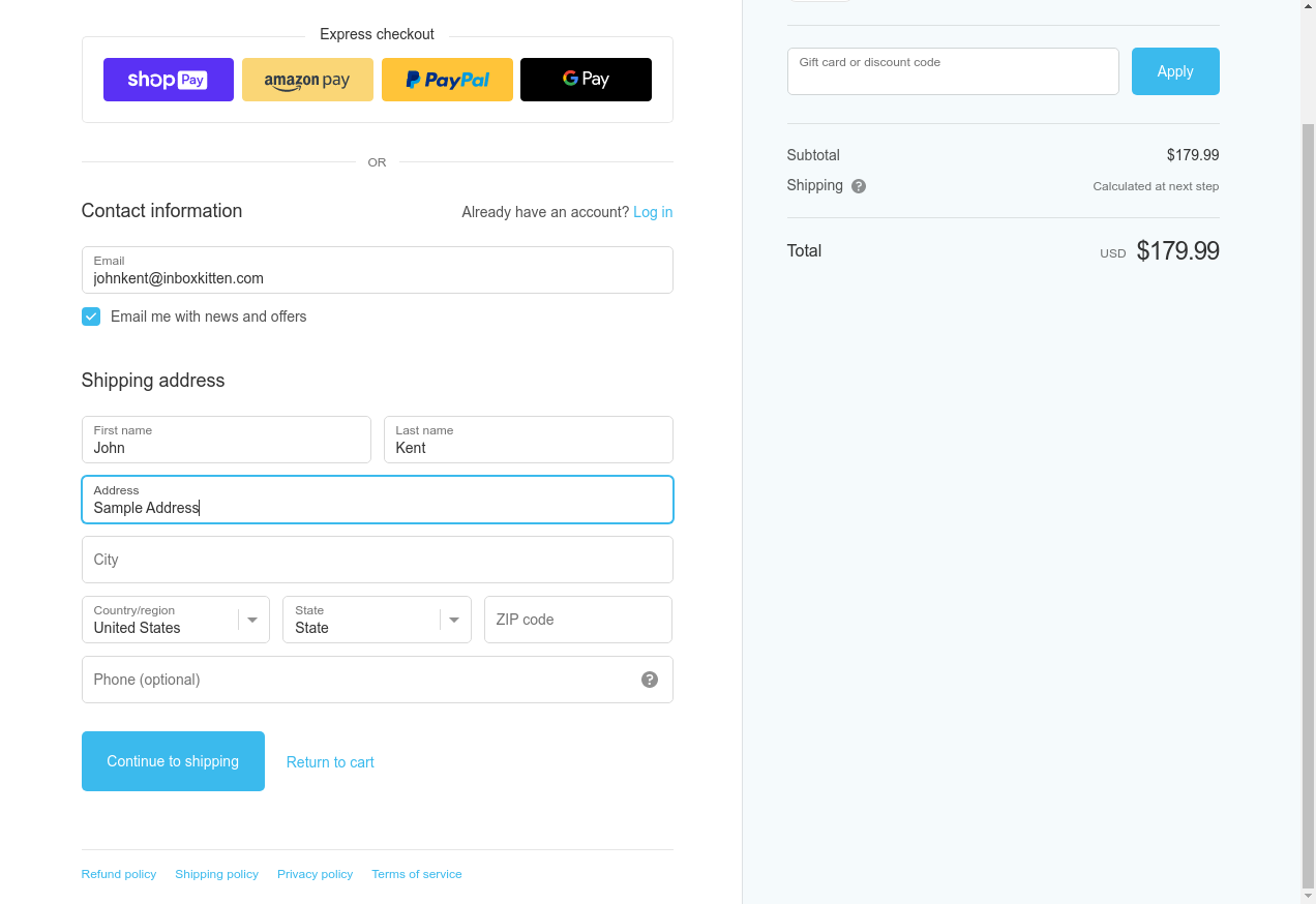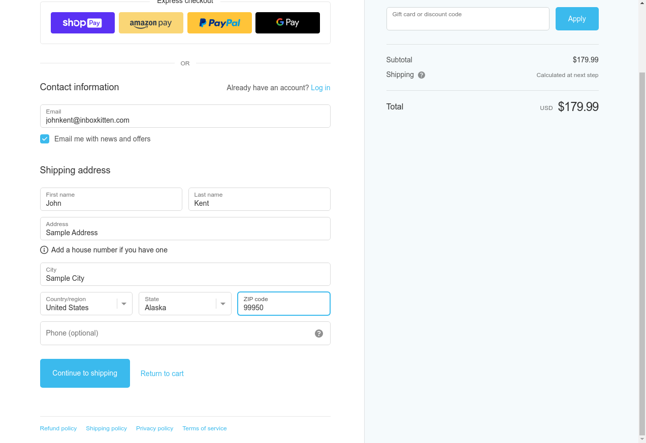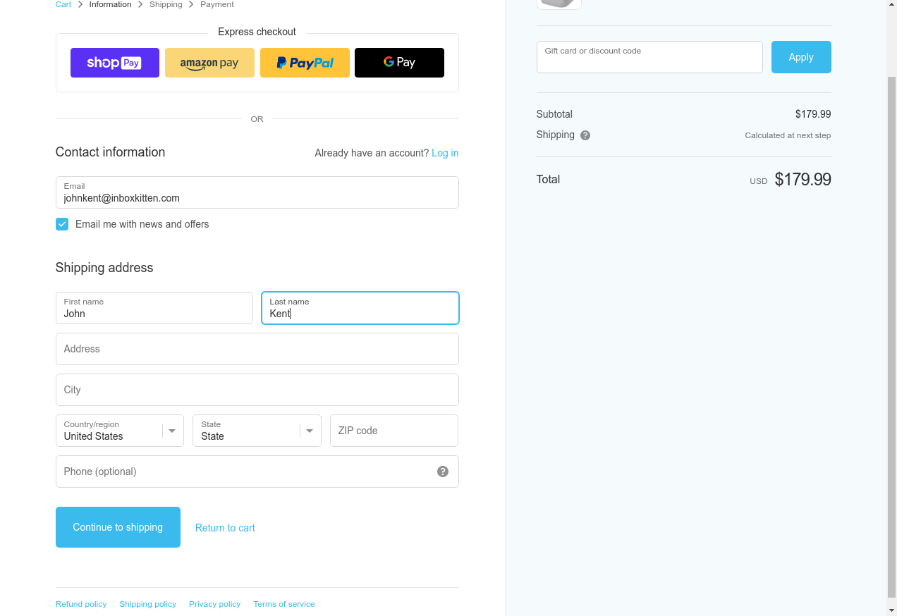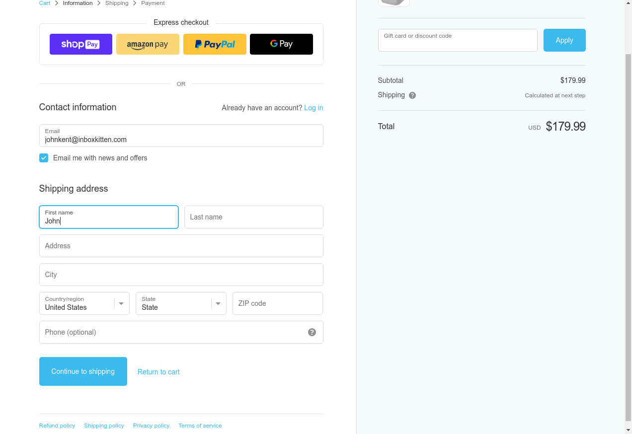 18. I click "Continue To Shipping"