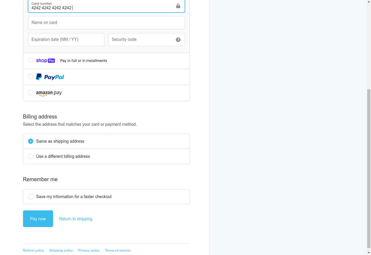22. I fill "Card Number": "4242 4242 4242 4242"