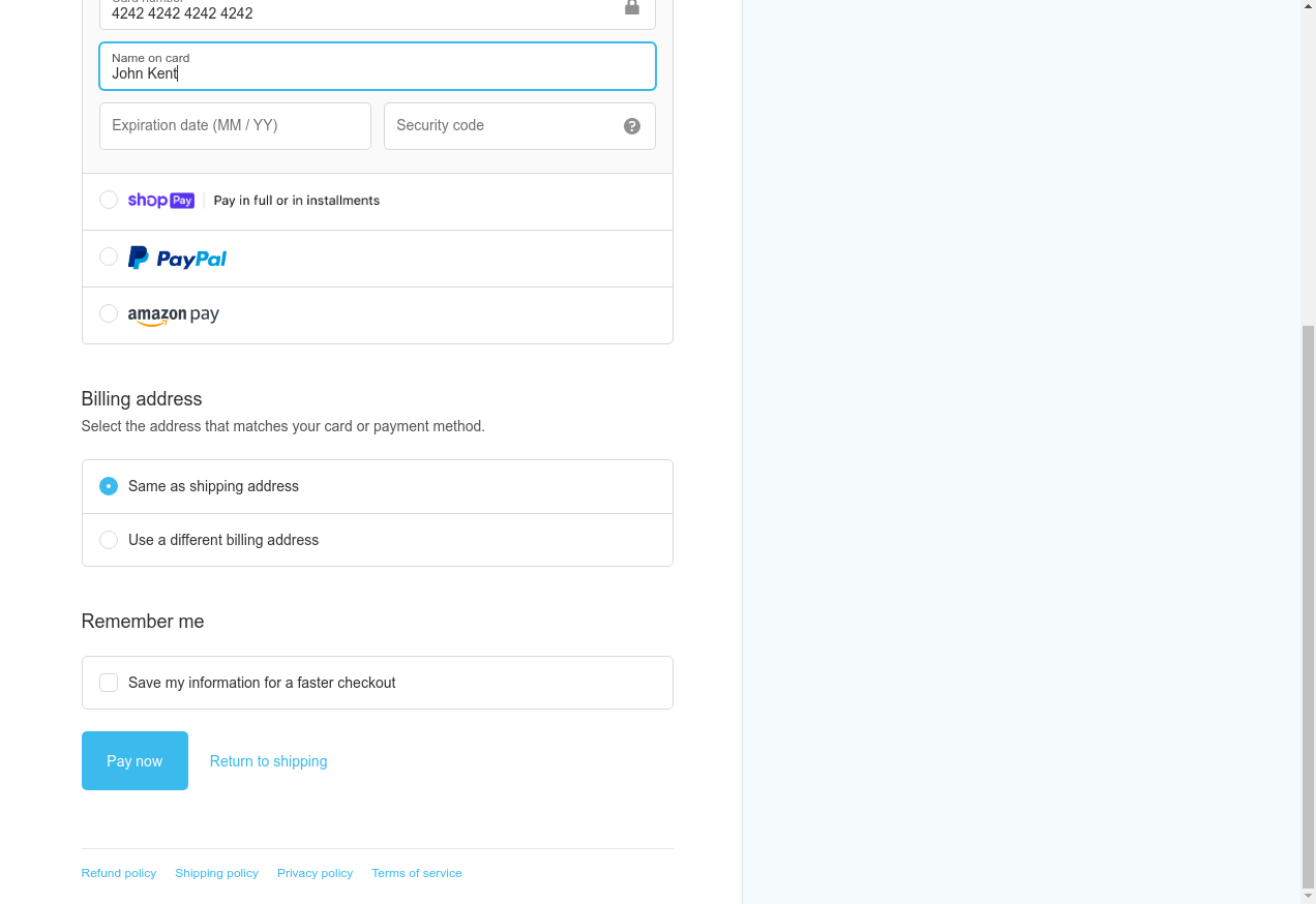 23. I fill "Name on card": "John Kent"