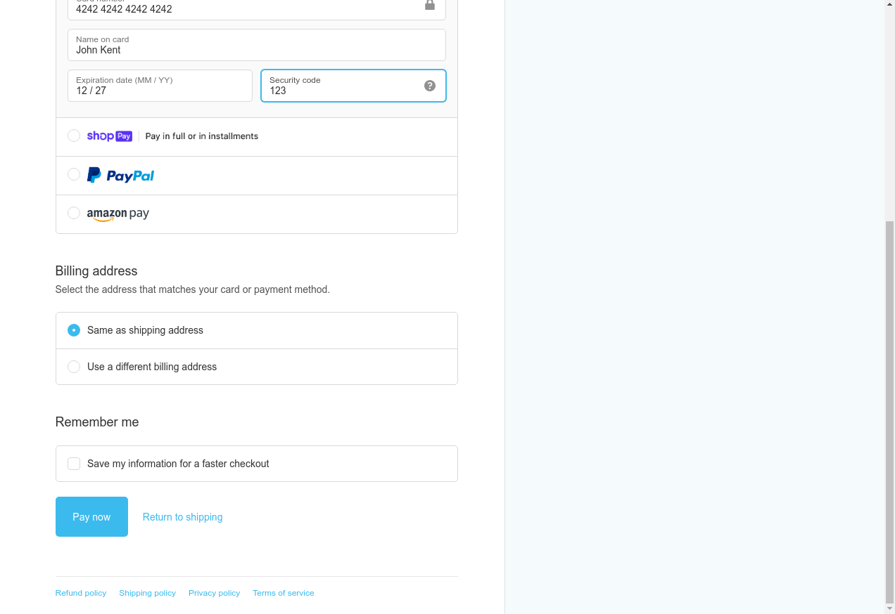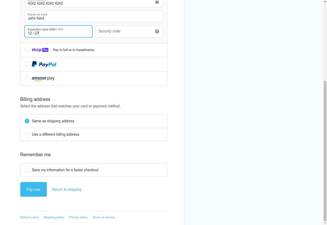 24. I fill "Expiration date (MM / YY)": "12/27"