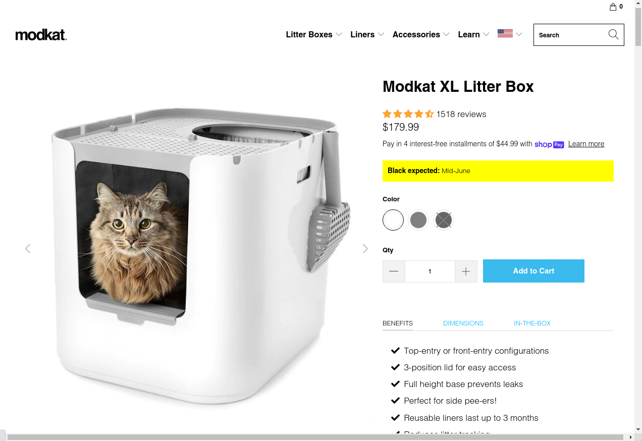 7. I click "Modkat XL Litter Box"