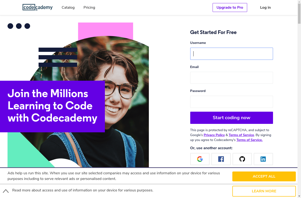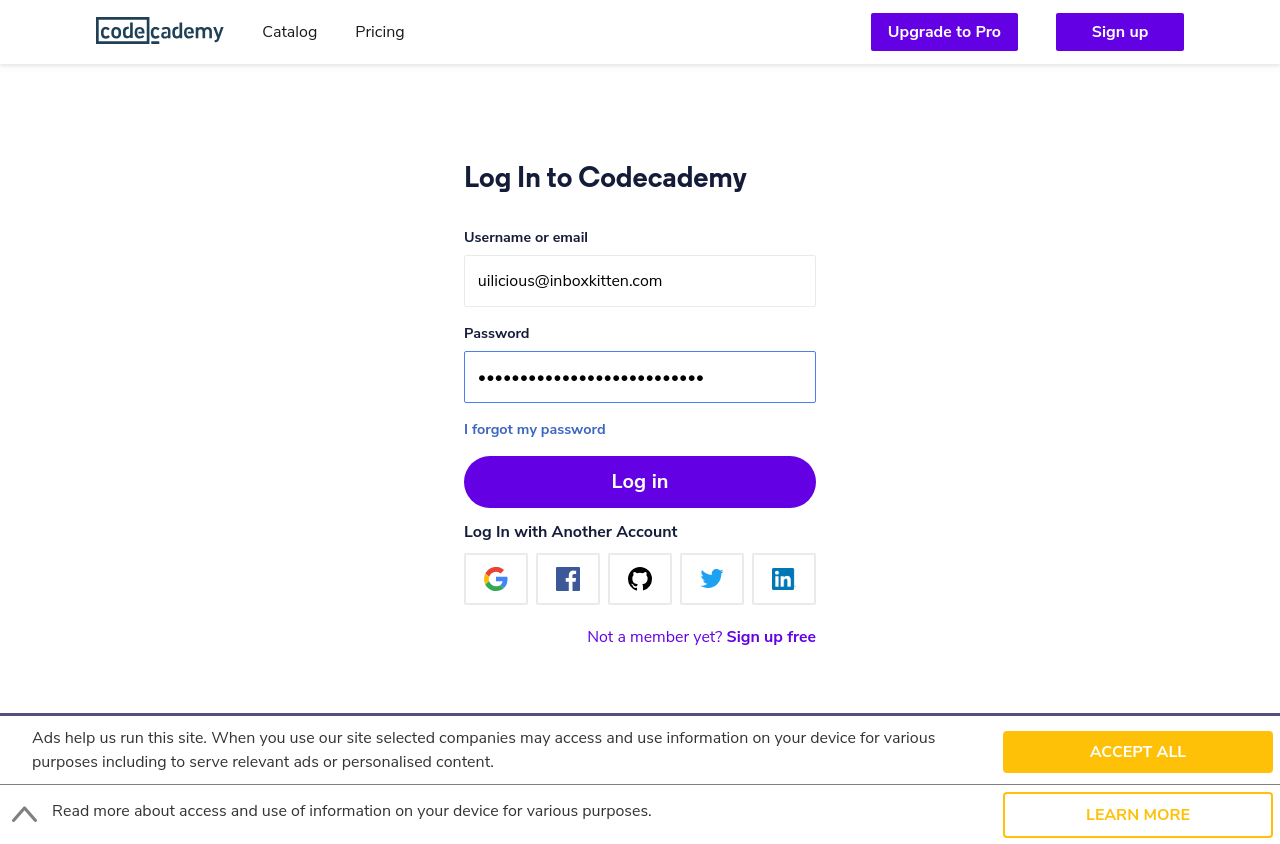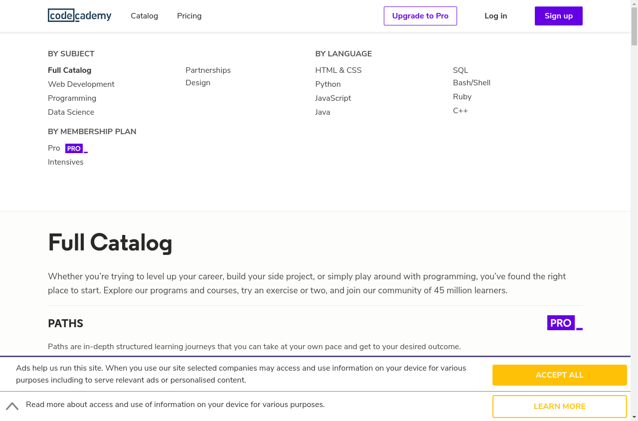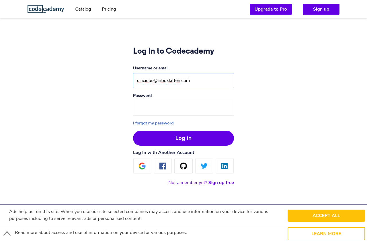 I go to "https://www.codecademy.com/"