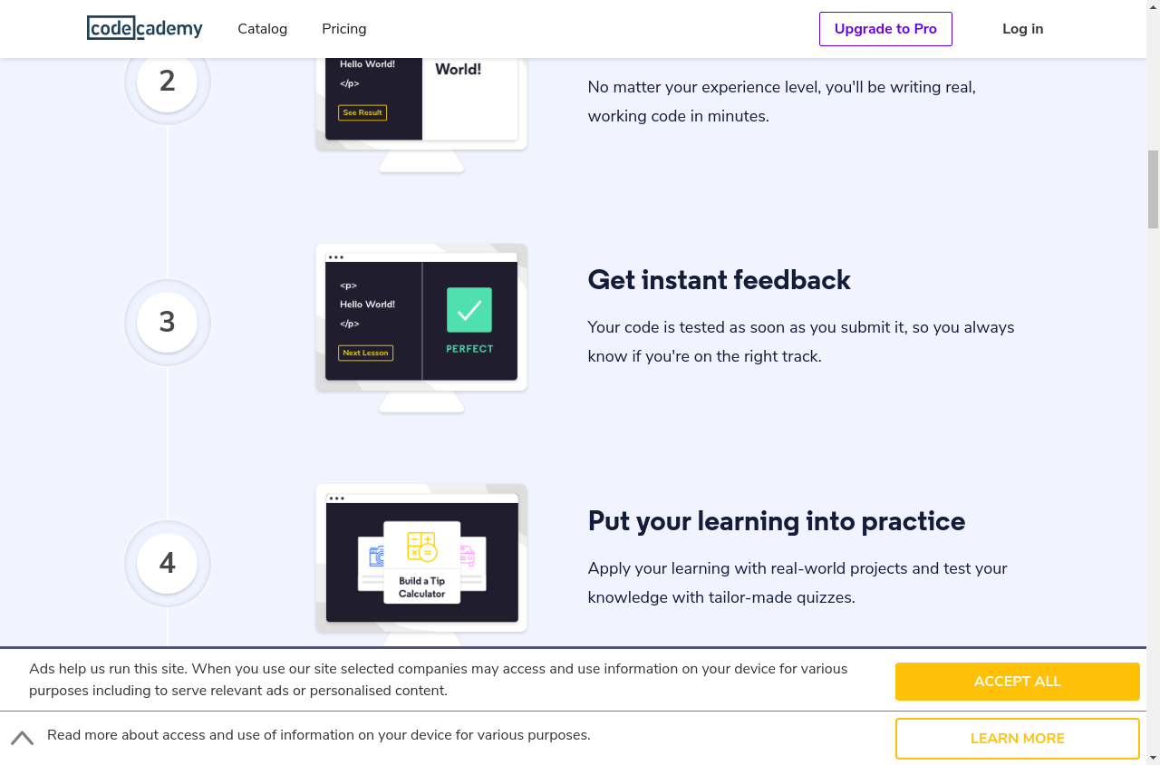 1. I go to "https://www.codecademy.com/"