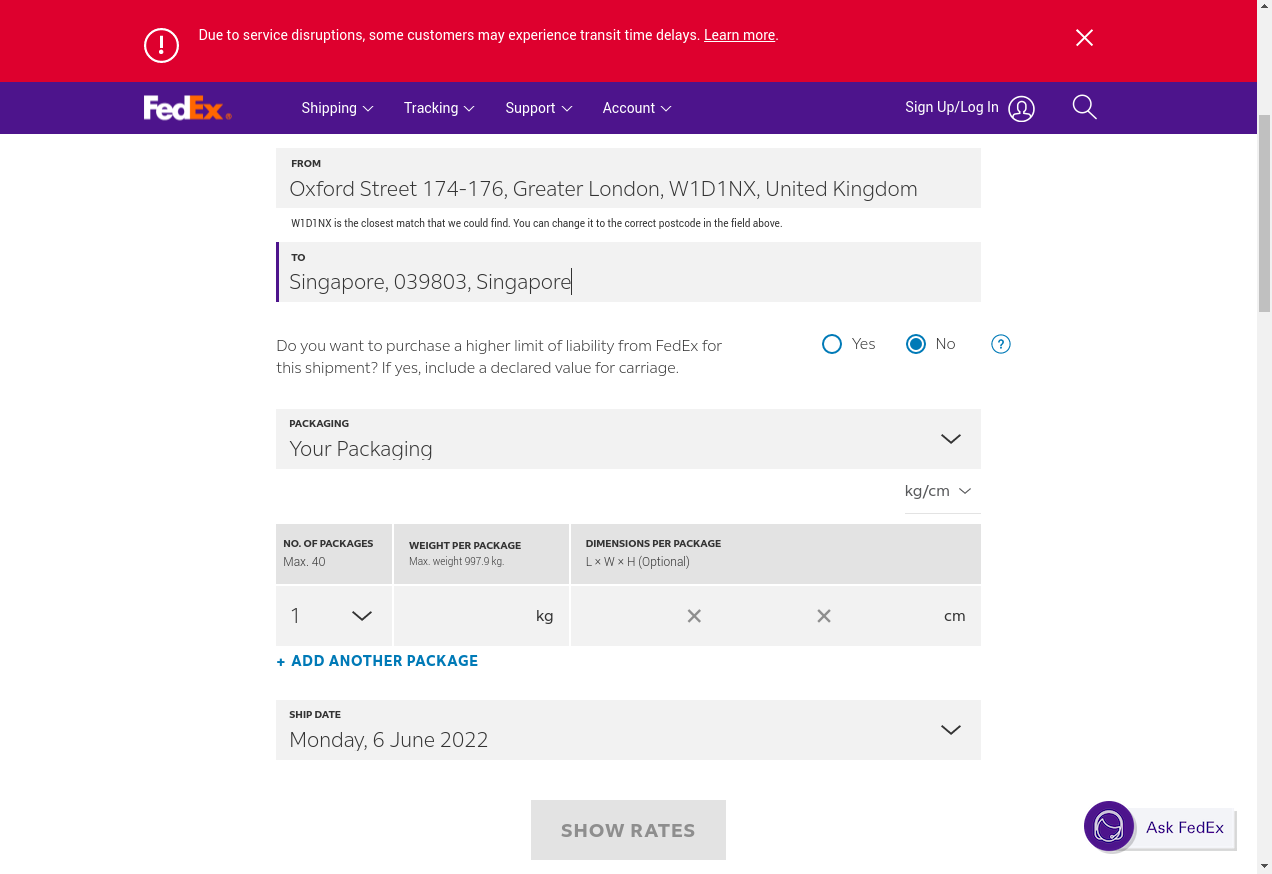 Check FedEx Shipping Rates