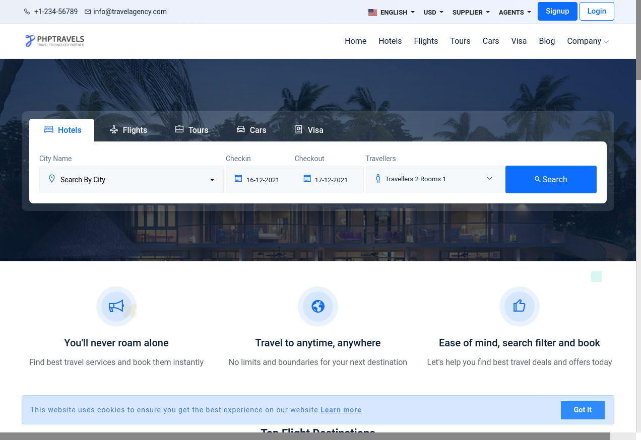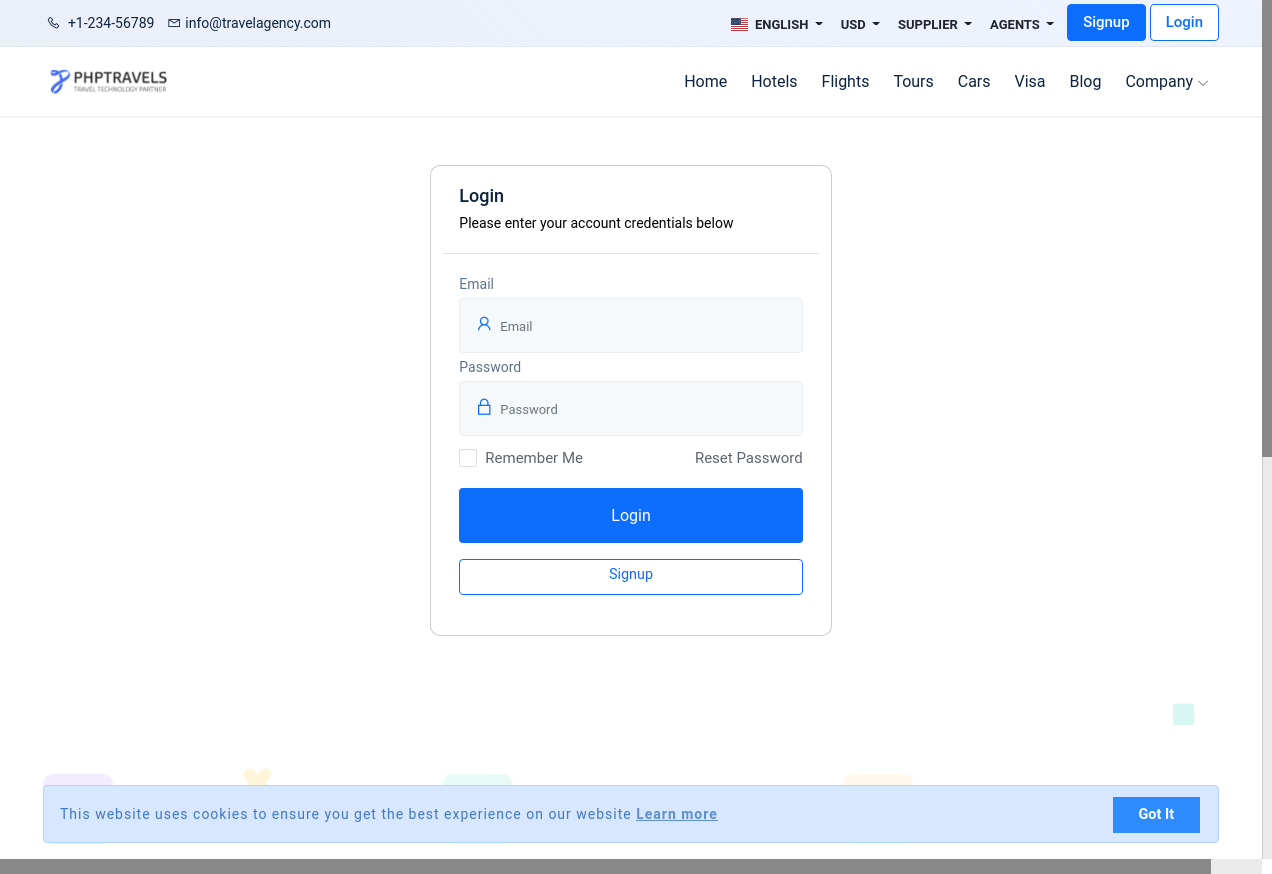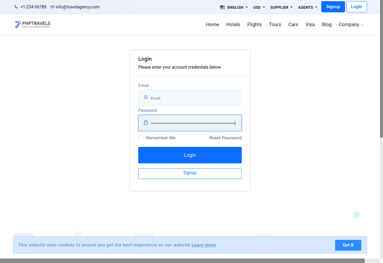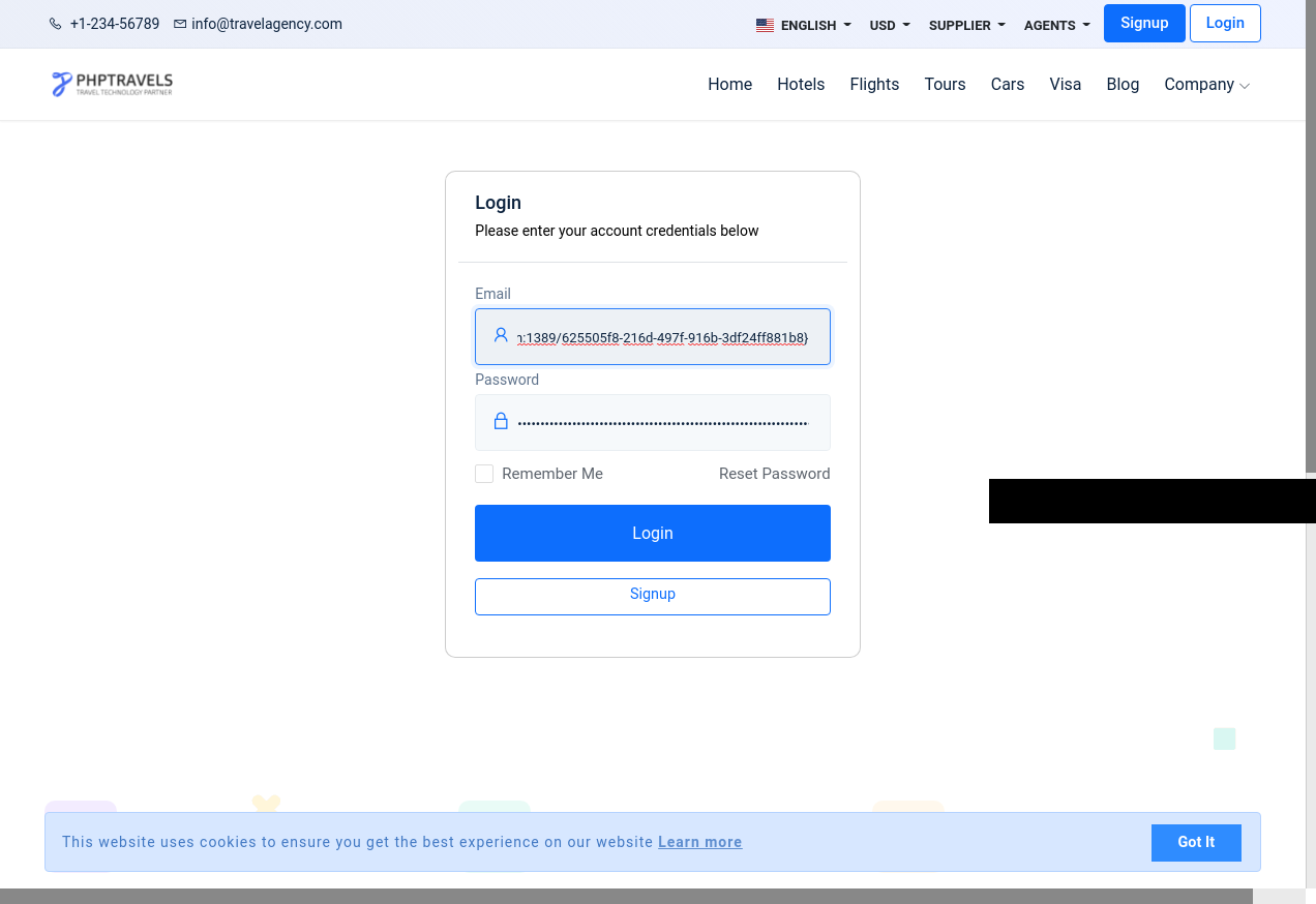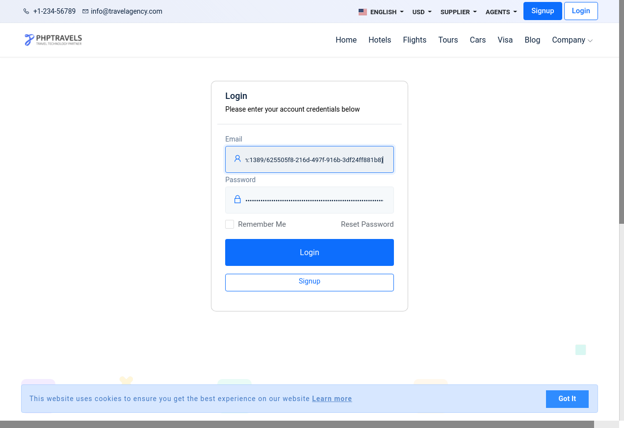 7. I go to "https://www.phptravels.net/"