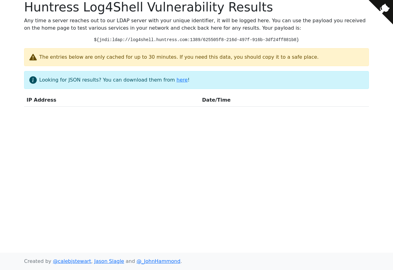 28. GET https://log4shell.huntress.com/json/625505f8-216d-497f-916b-3df24ff881b8