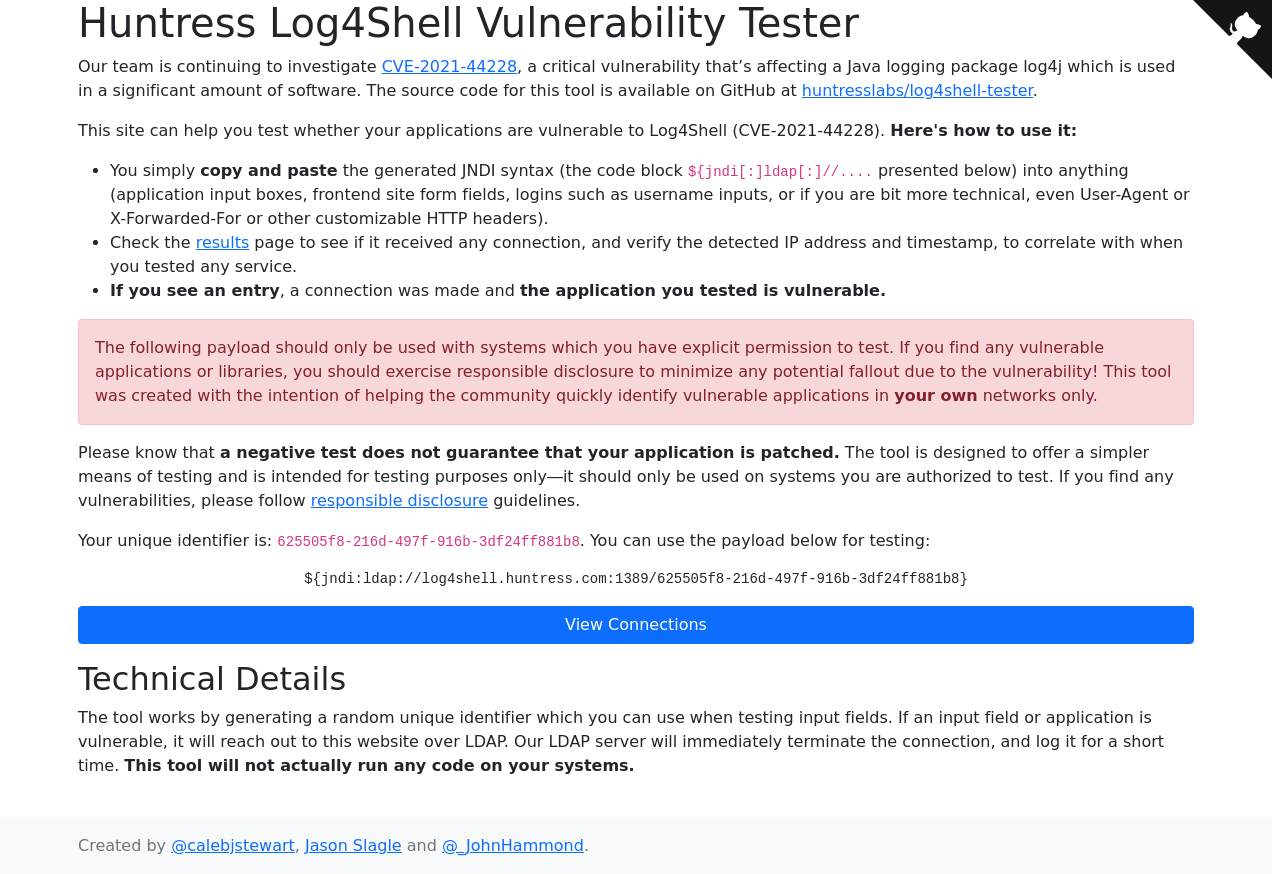4. I go to "https://log4shell.huntress.com/"